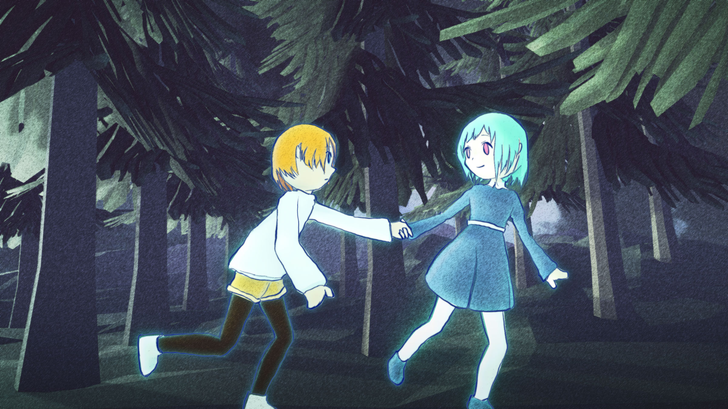 - 絵のモデルになってもらうため、彼らには暗い森での撮影に臨んでもらいました
