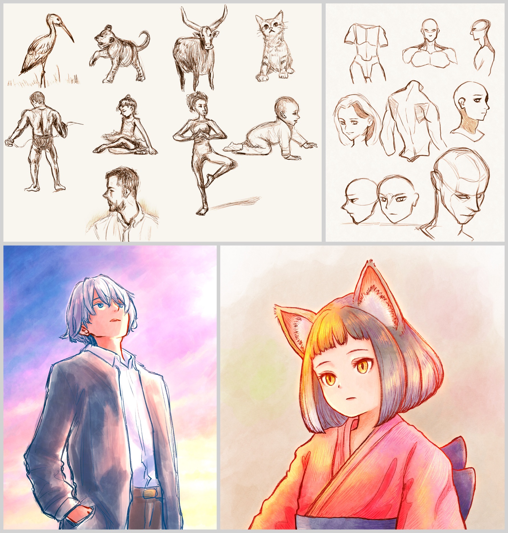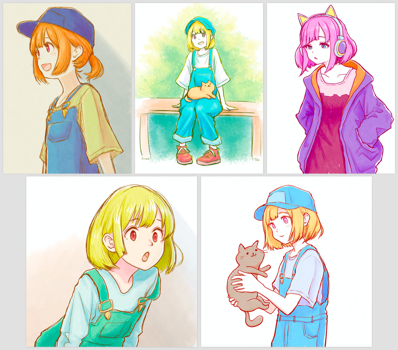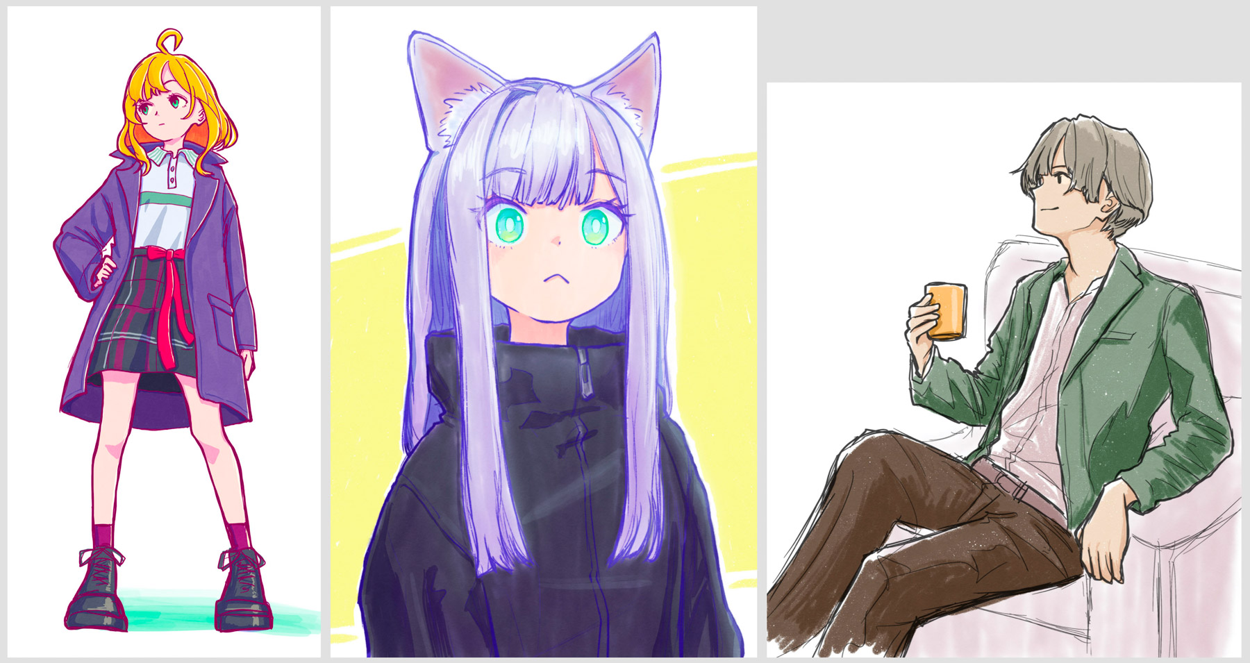 自分のゲームのキャラの顔グラ(バストショット、ポートレイト)とかを描けるようになりたいのでそういう構図多め。