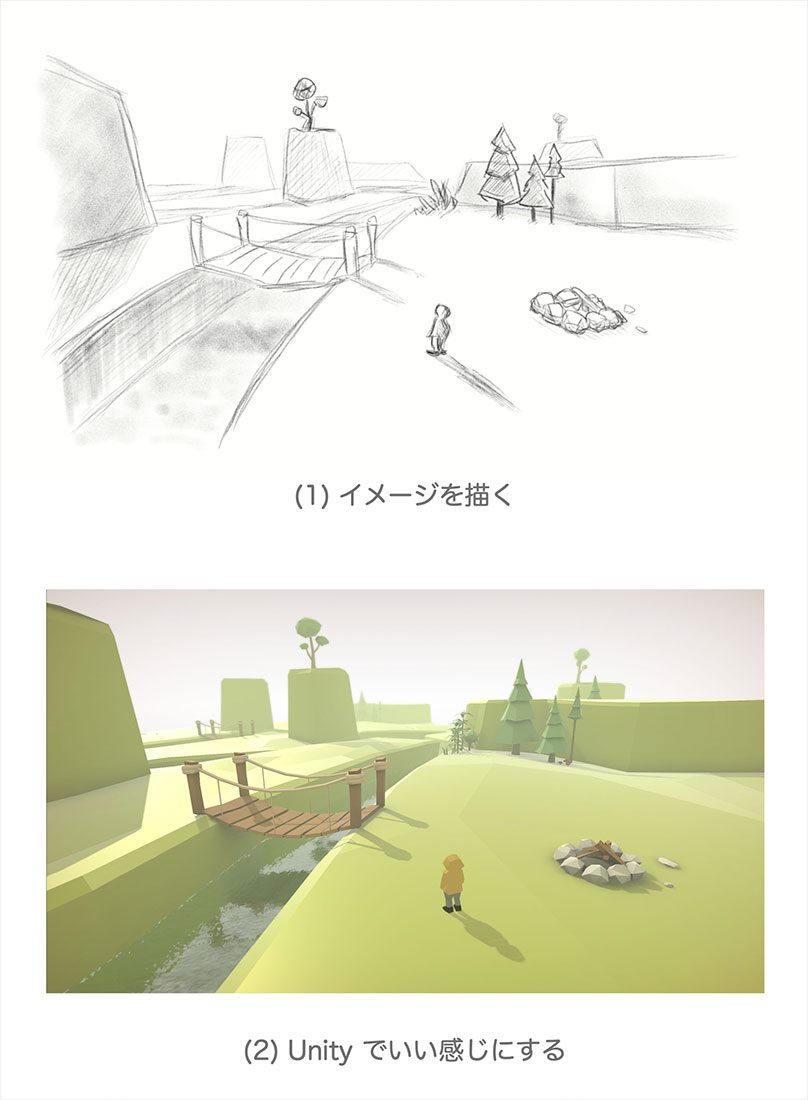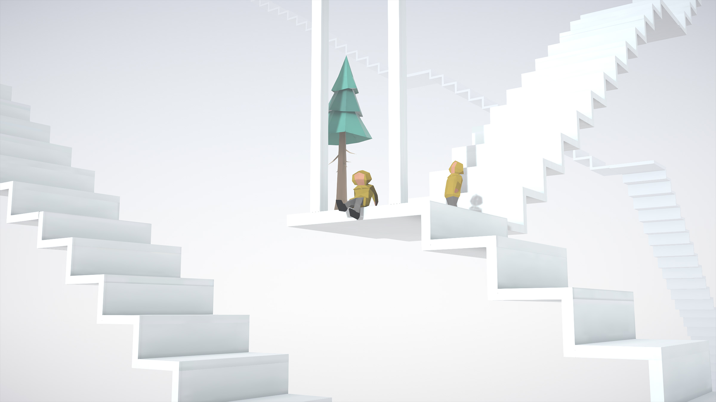 白っぽくして階段や門のようなものを置くと精神世界感が出ますね。